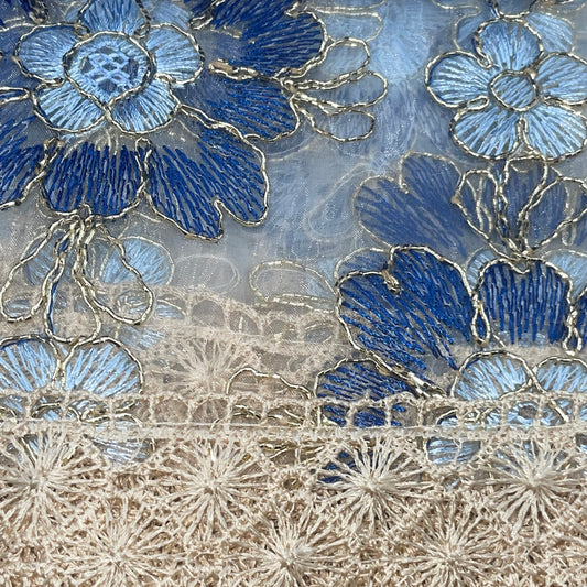 3 piece Kitchen curtain Embroidered flower Royal Blue