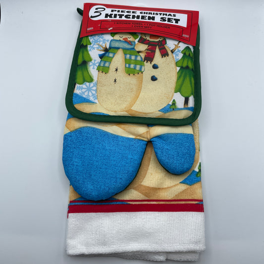 3 pack Holiday Christmasprinted kitchen Set Snowfamily