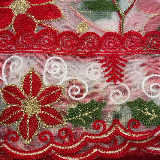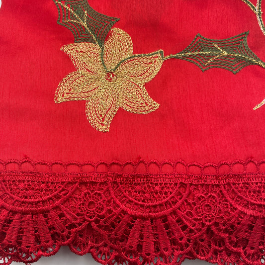 3 Piece embroidered Holiday Christmas kitchen curtain Poinsettia Red w White