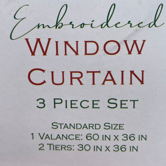 3 Piece embroidered Holiday Christmas kitchen curtain Red