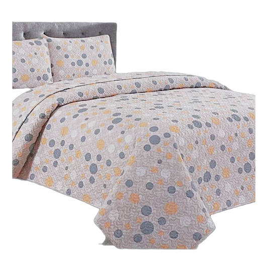 3 Piece Quilt Set Circle Dot pattern Reversible Print Gray KING