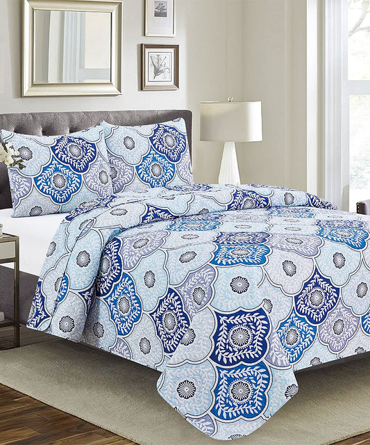 3 Piece Quilt Set Half Royal Shell Dot pattern Print Blue KING