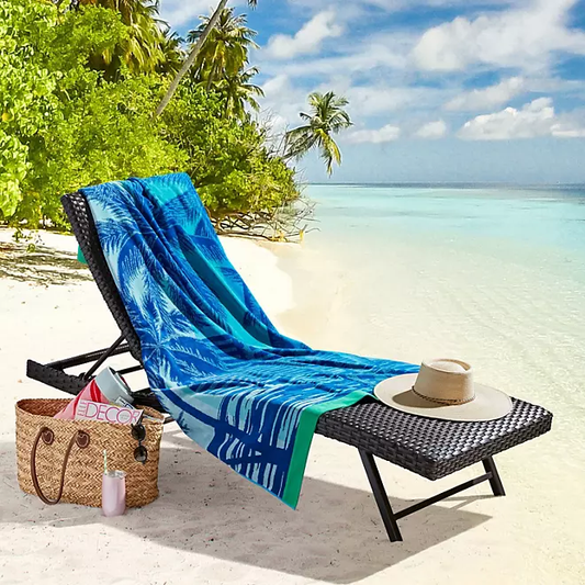 Bright & Colorful 40" W x 72" XL Oversized REVERSIBLE EXTRA-LARGE Towel Bath Sheets Beach Blue Palm