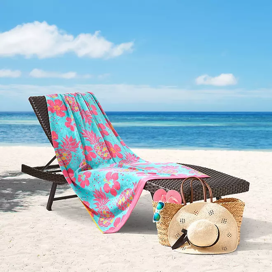 Bright & Colorful 40" W x 72" XL Oversized REVERSIBLE EXTRA-LARGE Towel Bath Sheets Beach Flower Pink Pineapple