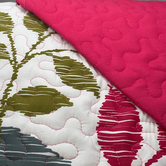 9 Piece Quilt w Sheet Set pattern Print Reversible Pink leaf KING