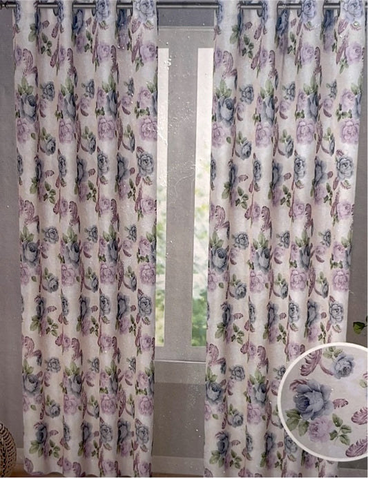 JILLIAN Printed Floral flowers Pattern Panel Curtain with 8 grommets Purple Beige