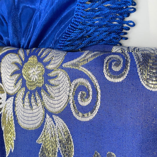 Jacquard Curtain Panel with attached Valance Tassel Royal Blue