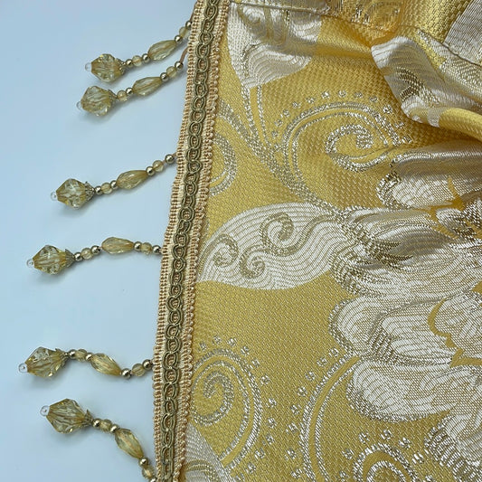 Golden Yellow Printed Floral Pattern Printed Floral Waterfall Valance Beaded