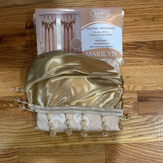 Macrame jacquard Pattern Panel Curtain w attached lace valance Gold