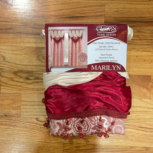 MARILYN Jacquard Pattern Panel Curtain w attached lace valance Burgundy