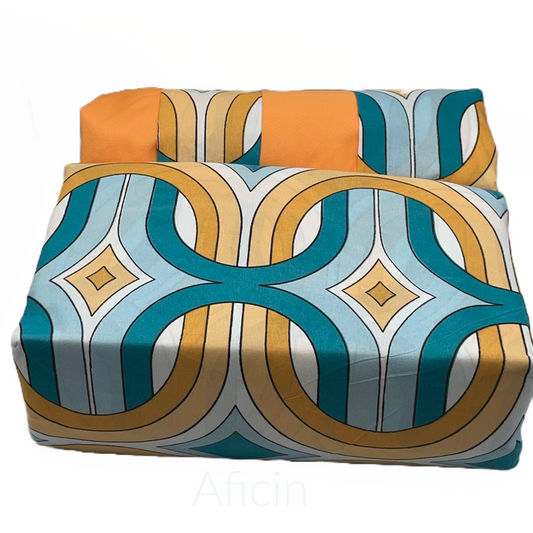 Luxury Organic 6 piece Print Sheet Set Soft 1800 Pumpkin Teal Stripe FULL