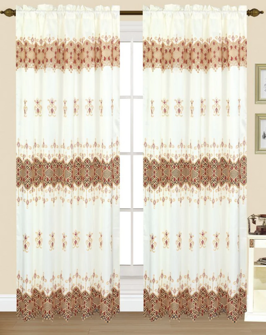 Macrame jacquard Panel Curtain w attached lace valance Beige Burgundy Red