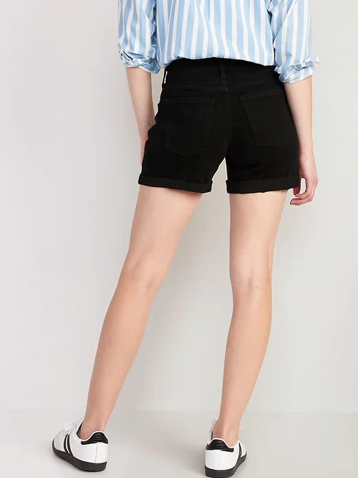 Mid-Rise Wow Black-Wash Jean Shorts for Women -- 5-inch inseam