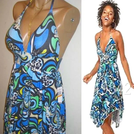 NEW Logo Print Y2K Print Sexy Ruffle Dress Blue