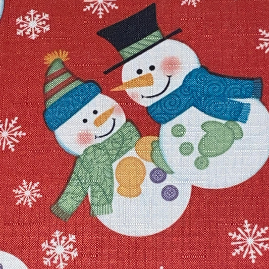 Printed Linen Fabric Christmas holiday table placemats "Snowman" 12 X 18