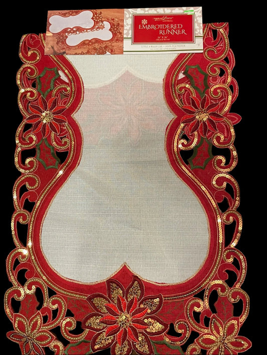 Embroidered Sequin Christmas holiday table runner 16 X 36