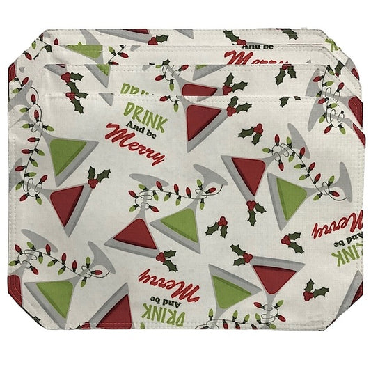 Printed Linen Fabric Christmas holiday table placemats "Drink and Be Merry" 12 X 18
